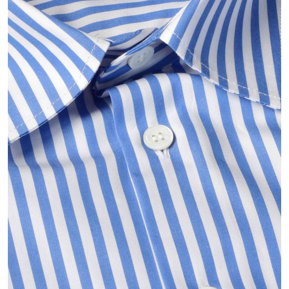 Chemise blanche à rayures bleues, incontournable de nos collections. Facile à marier avec l'ensemble de vos tenues. Le modèle ATLANTIQUE est respectueux des valeurs de la marque, son tissu sait conjuguer à merveille élégance et décontraction. Cette chemise cintrée vous offre par son design, un style classique et sophistiqué.