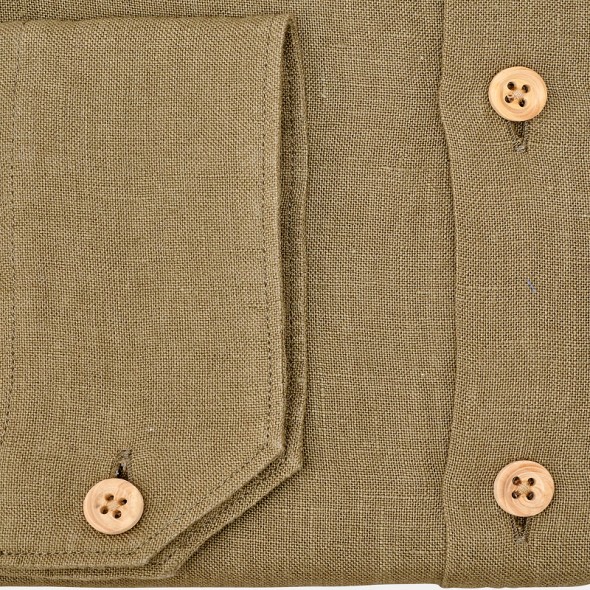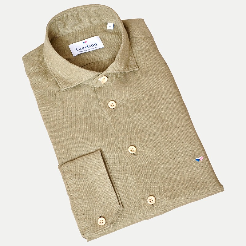 Grâce à sa coupe cintrée, la chemise BERGERAC sait allier confort, modernité en gardant notre touche So French si importante pour nous. Et puis, et puis, et puis, il y a notre grande fierté c'est notre lin 100% Français, que nous sommes si fiers de vous proposer. Récolté en Normandie, tissé et teint dans les Hauts de France et bien entendu confectionné dans notre atelier, vous serez fiers de porter une des rares chemises 100% Française. N’oublions pas notre magnifique petit bouton en buis, fabriqué dans le Jura. Le tissage particulier que nous avons développé avec notre partenaire, la qualité exceptionnelle de notre fil de Lin, font vraiment de ce produit, une chemise d’exception.
