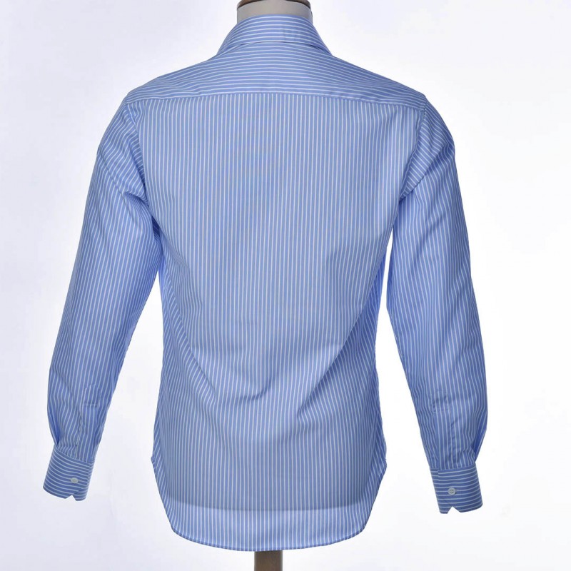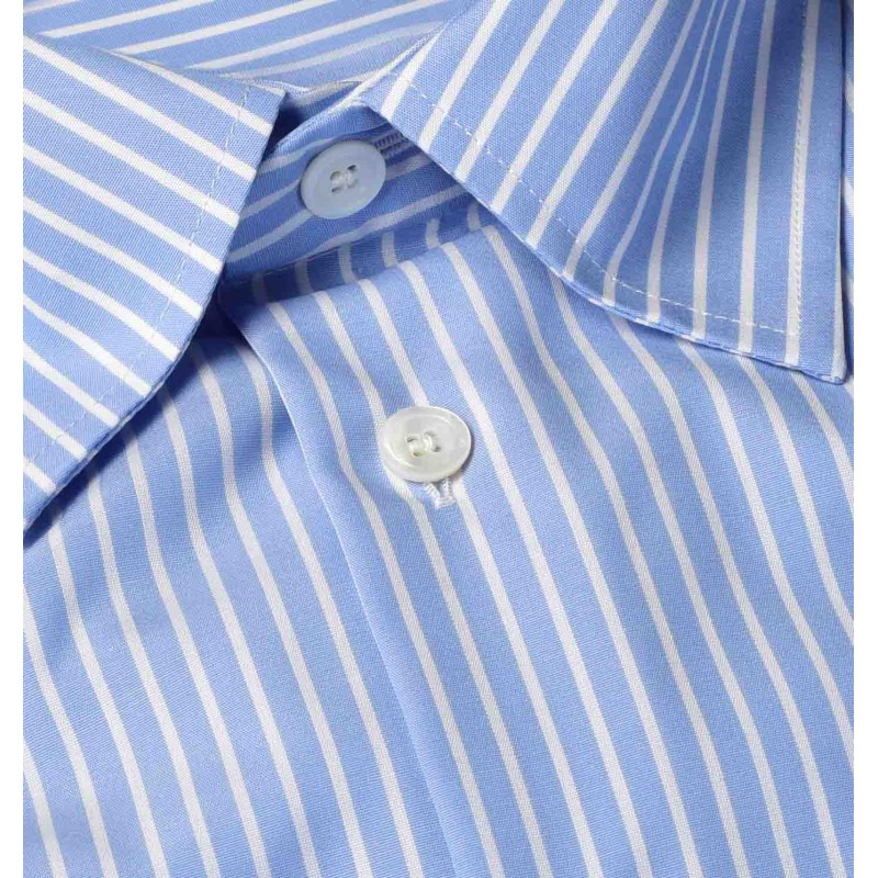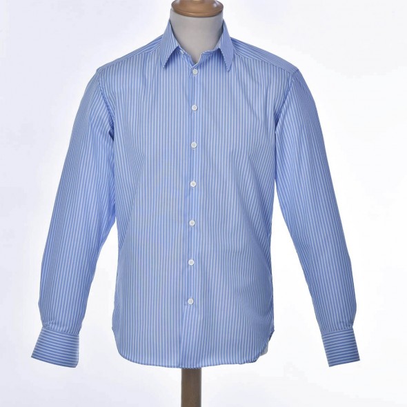 Chemise bleue soutenu à fines rayures blanches, incontournable de nos collections. Facile à marier avec l'ensemble de vos tenues. Le modèle BUSINESS est respectueux des valeurs de la marque, son tissu sait conjuguer à merveille élégance et décontraction. Cette chemise vous offre par son design et sa coupe droite, un style classique et sophistiqué.