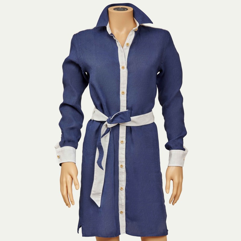 ROBE CHEMISE JULIE LIN MARINE ET IVOIRE
