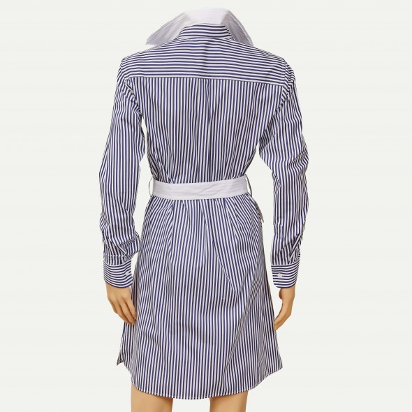 Une robe chemise en 100% Coton rayé bleu marine, c'est ce qu'il manque dans votre garde-robe.