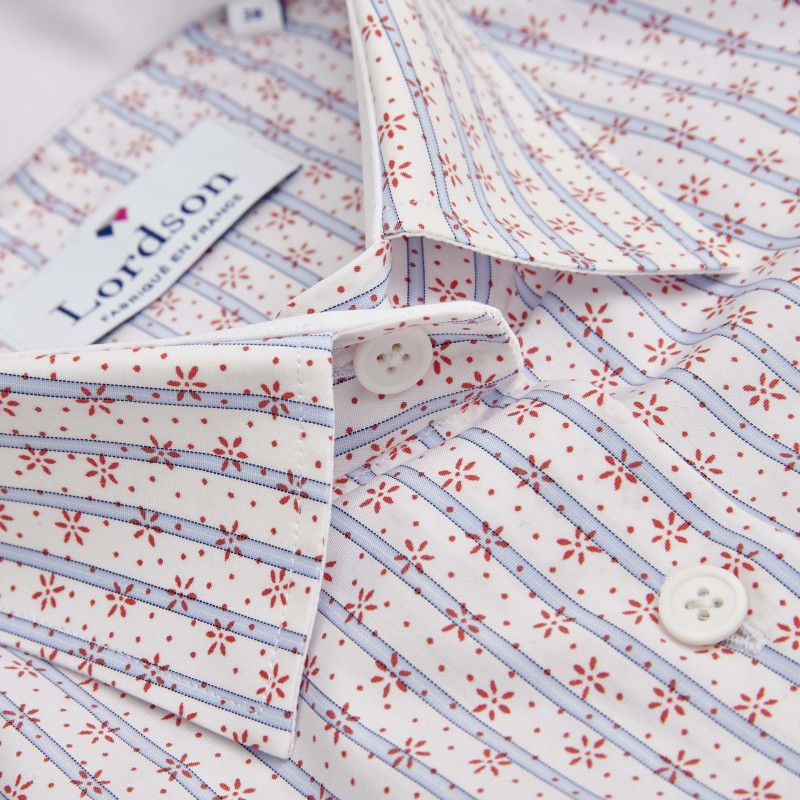 Craquez pour ce chemisier Lady au style féminin avec sa découpe princesse. Distingué et original avec ses poignets, son intérieur et dessous de col à motifs, ce chemisier rayé Lady vous offre une coupe ajustée afin d'épouser tous types de morphologie. Le modèle LADY vous propose également un tissu en pur coton, doux pour la peau et facile à repasser.