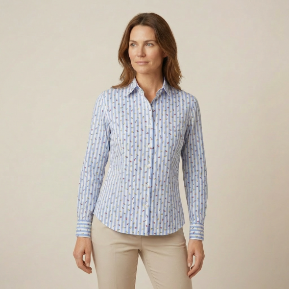 • CHEMISIER FEMME LADY RAYURES BLEU CIEL ET FLEURS
