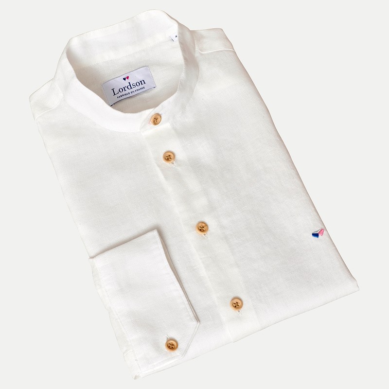 Alliant un porter chic et décontracté, ce col distinctif tient son nom de l'homme d'état et chef militaire chinois Mao Zedong. Voilà un produit qui manquait dans l'offre LORDSON. Nous sommes heureux de vous présenter notre modèle Lascaux ! Une coupe cintrée pour la modernité, un col Mao pour l’originalité et notre grande fierté c'est ce lin 100% Français. Récolté en Normandie, tissé et teint dans les Hauts de France et bien entendu confectionné dans notre atelier, vous serez fiers de porter une des rares chemises 100% Française. Sans oublier notre magnifique petit bouton en buis, fabriqué dans le Jura. Le tissage particulier que nous avons développé avec notre partenaire, la qualité exceptionnelle de notre fil de Lin, font de ce produit une chemise d’exception.