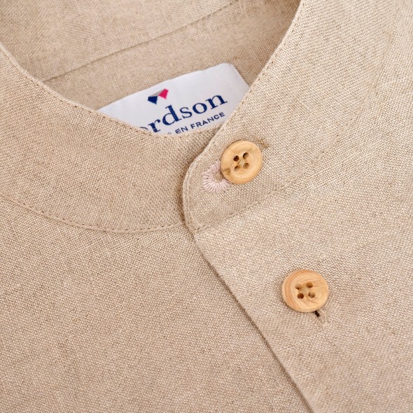 Alliant un porter chic et décontracté, ce col distinctif tient son nom de l'homme d'état et chef militaire chinois Mao Zedong. Voilà un produit qui manquait dans l'offre LORDSON. Nous sommes heureux de vous présenter notre modèle Lascaux ! Une coupe cintrée pour la modernité, un col Mao pour l’originalité et notre grande fierté c'est ce lin 100% Français. Récolté en Normandie, tissé et teint dans les Hauts de France et bien entendu confectionné dans notre atelier, vous serez fiers de porter une des rares chemises 100% Française. Sans oublier notre magnifique petit bouton en buis, fabriqué dans le Jura. Le tissage particulier que nous avons développé avec notre partenaire, la qualité exceptionnelle de notre fil de Lin, font de ce produit une chemise d’exception.