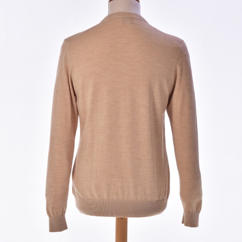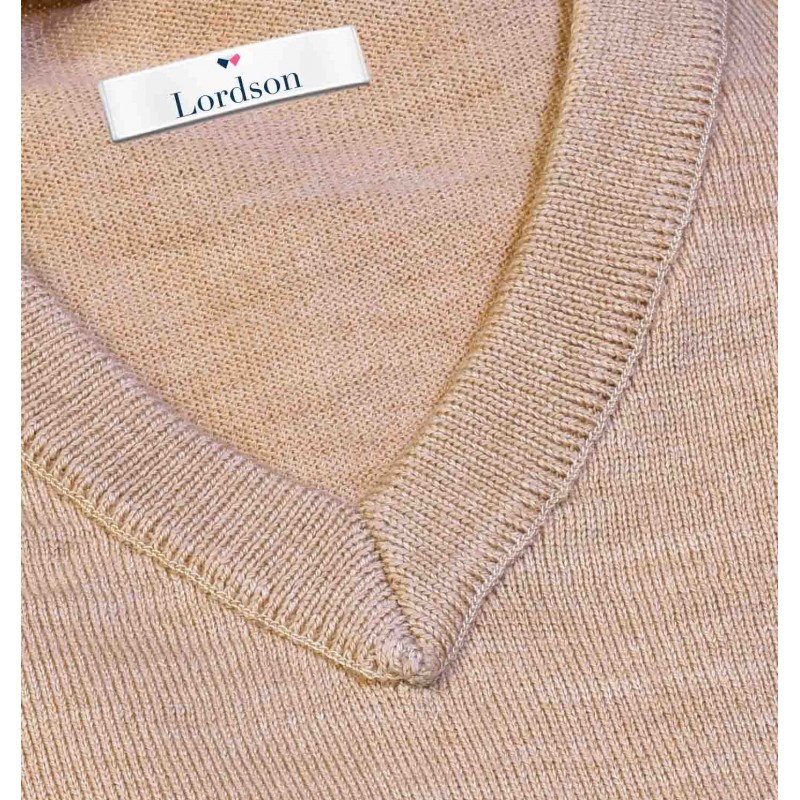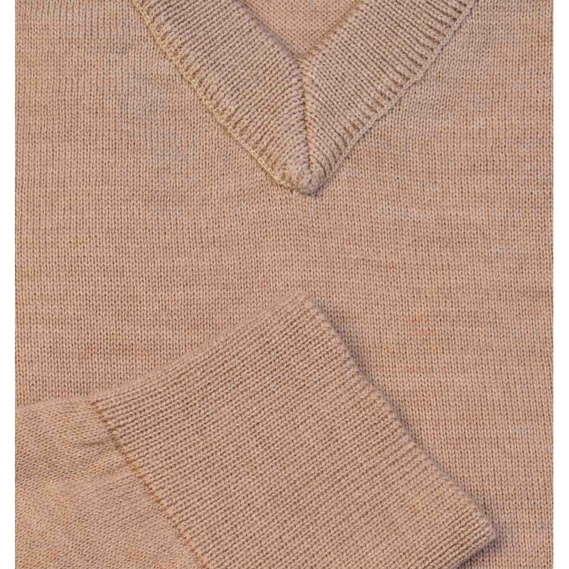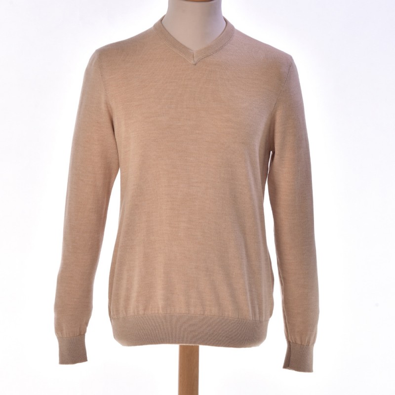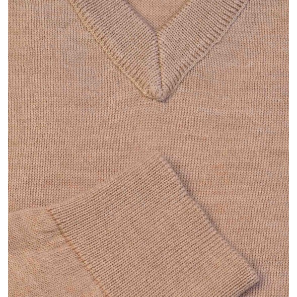 Pull petit col V beige sans coudières incontournable dans votre vestiare.