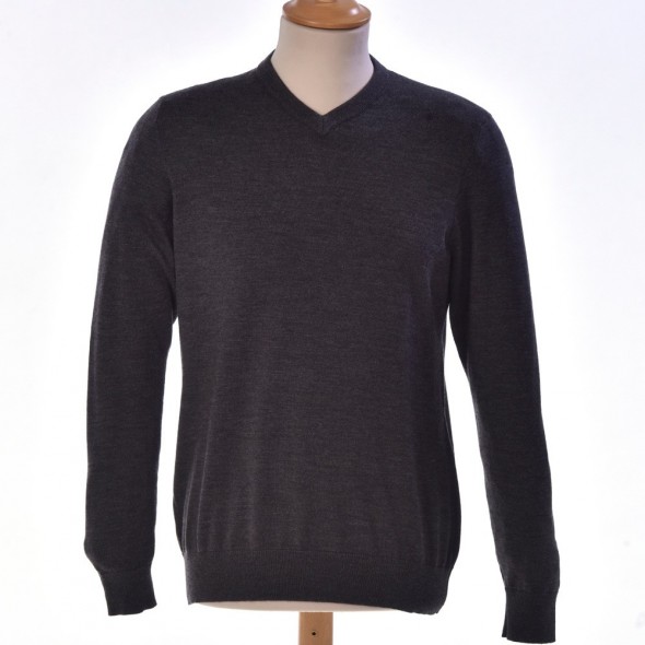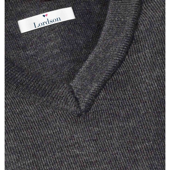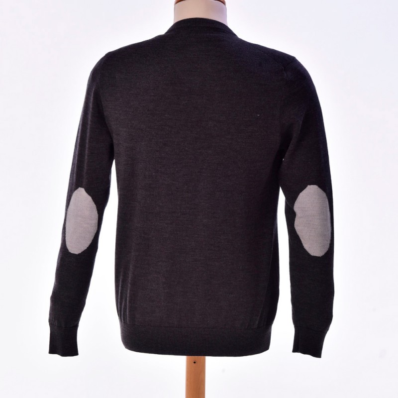 Pull petit col V gris anthracite avec coudières gris clair, incontournable dans votre vestiare.