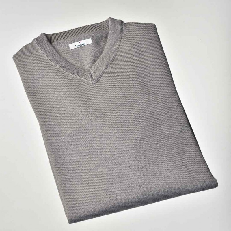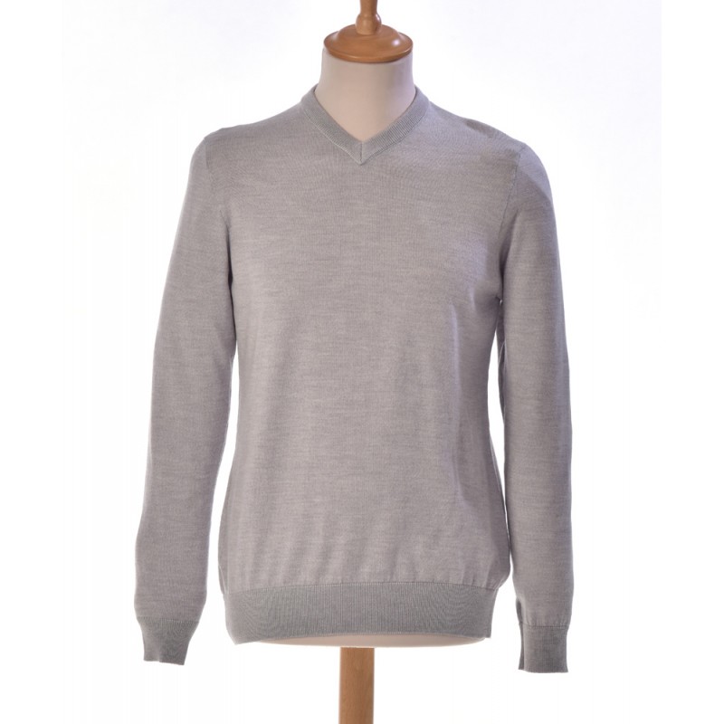 Pull petit col V gris clair sans coudières, incontournable dans votre vestiare.