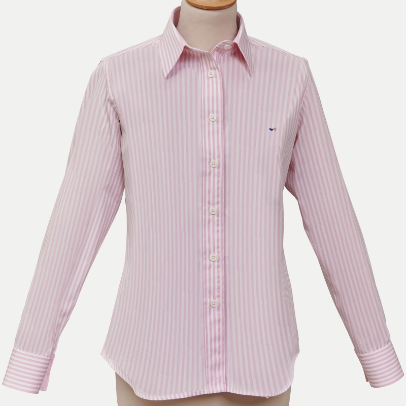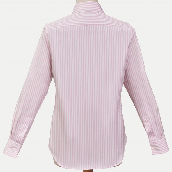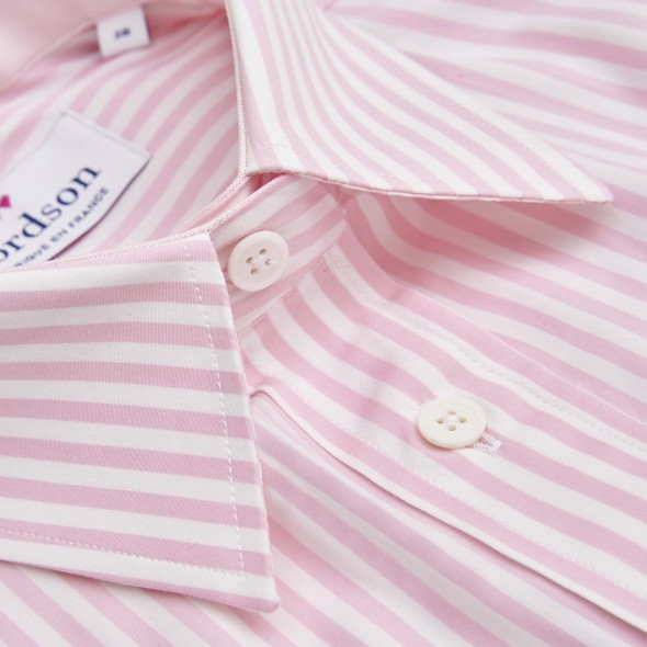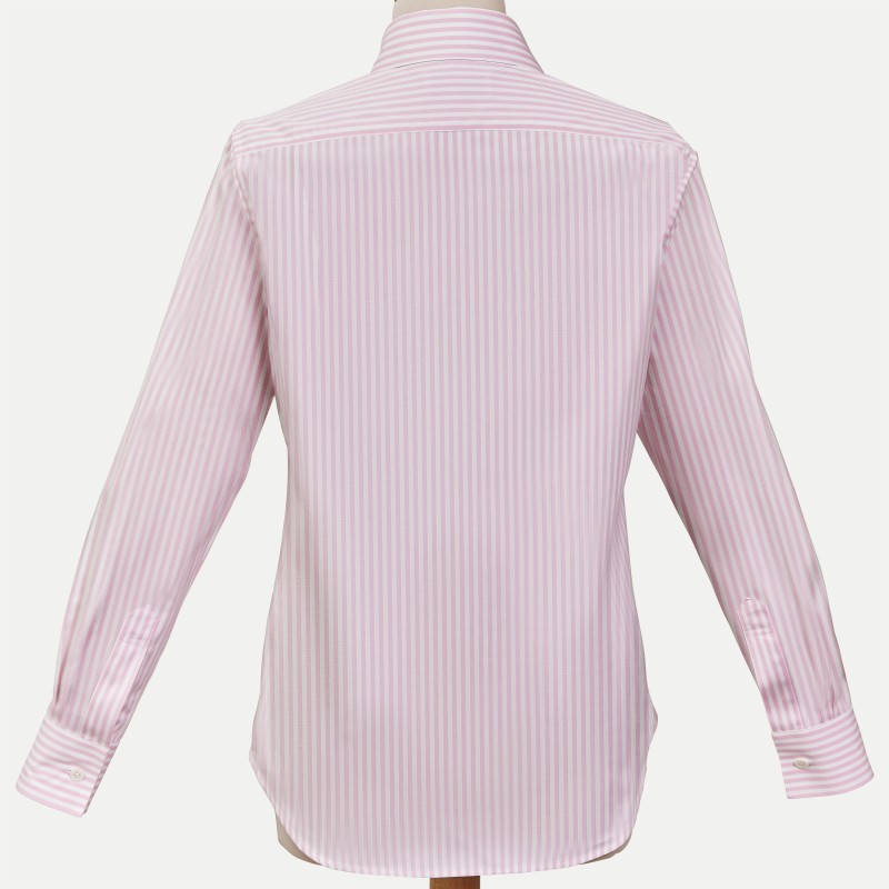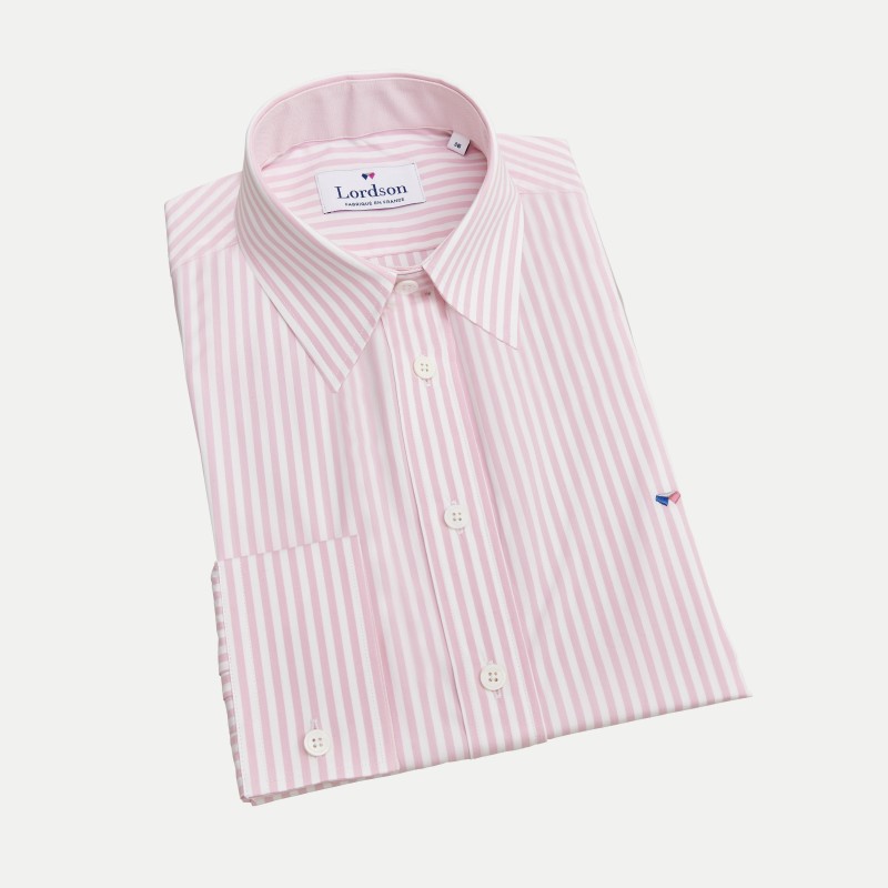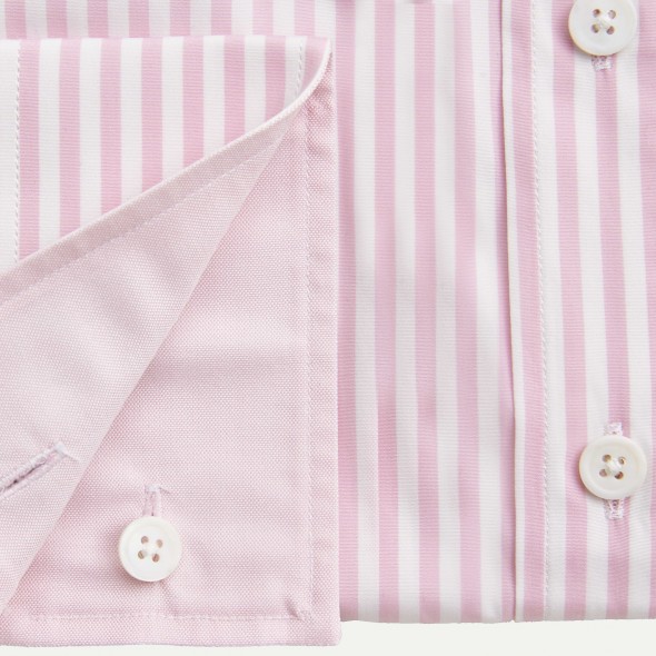Cette sompteuse rayure baton rose, son tissu blanc en opposition que vous retrouverez au niveau des intérieurs poignets et col, sauront vous combler.