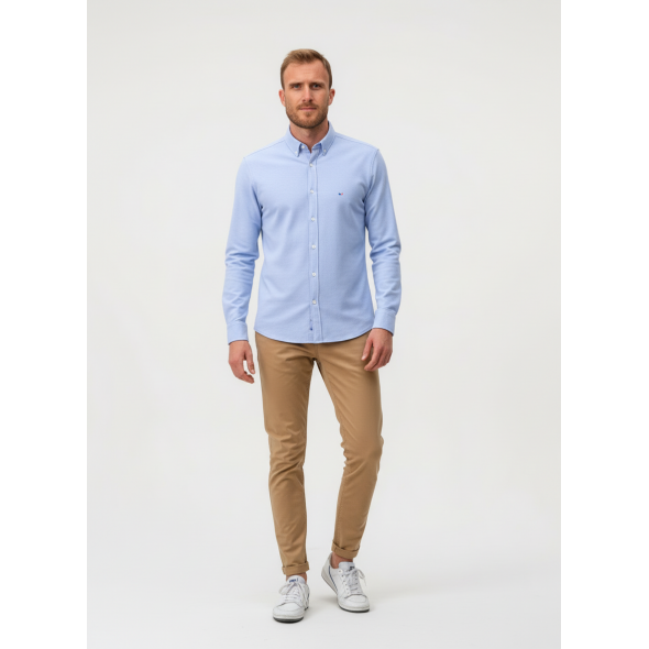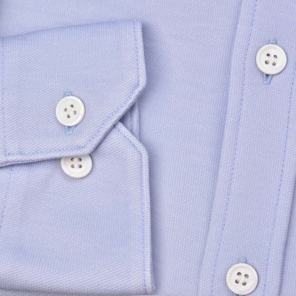Tel le réconfort d’un beau ciel bleu, ce magnifique tissu apportera une douceur à votre peau, et son coté polyester lui outre les bienfaits de cette fibre, permettra à votre chemise de ne jamais perdre de sa magnifique couleur. Modèle un petit peu ajusté, pour être élégant, vous ne pourrez que vous féliciter de cet achat.