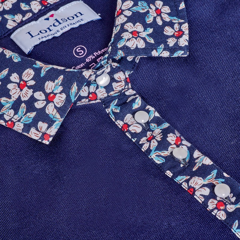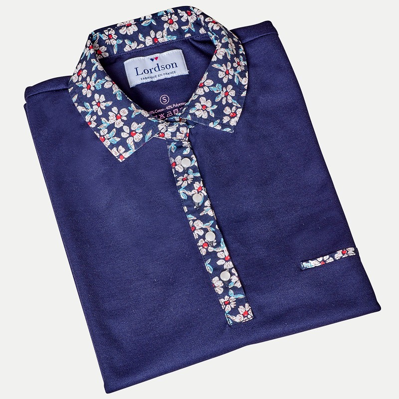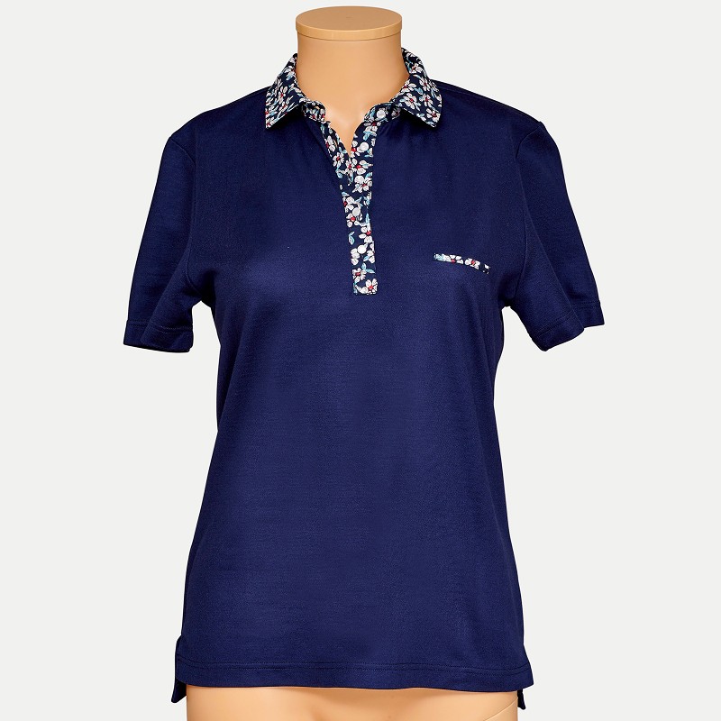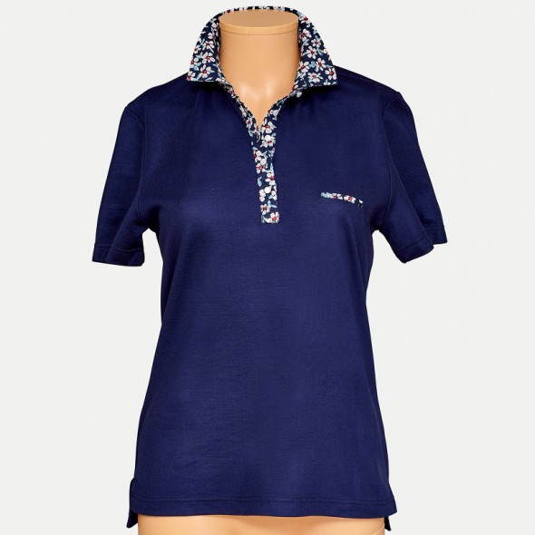 • POLO FEMME BUMP MARINE COL FLEURS AUTOMNALE
