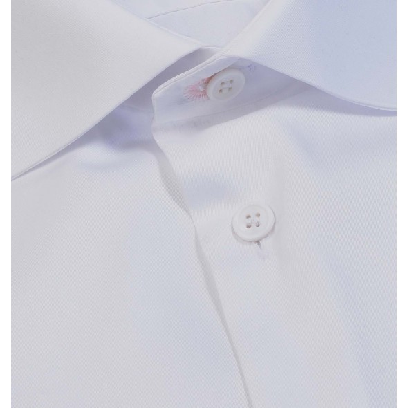 Cette chemise en popeline blanche sera ajustée à votre silhouette, sans être pour cela totalement slim fit.