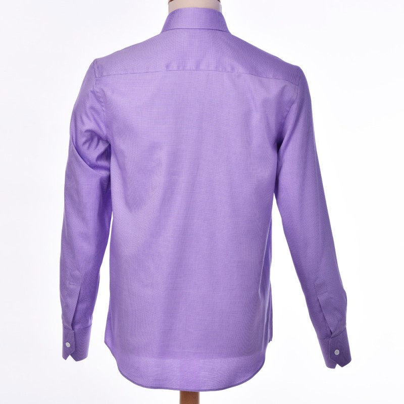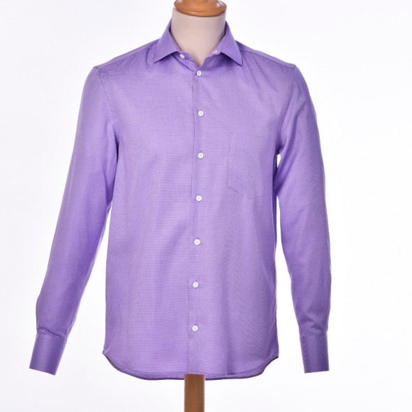 Double retors fils 100/2 réalisé à base de coton Egyptien compact ce qui donne à cette matière une construction à effet damiers. Ce tissu vous donnera une sensation de légèreté et le plaisir unique d'être à son contact. Ajustée comme il faut, ce modèle vous apporte chic et confort.