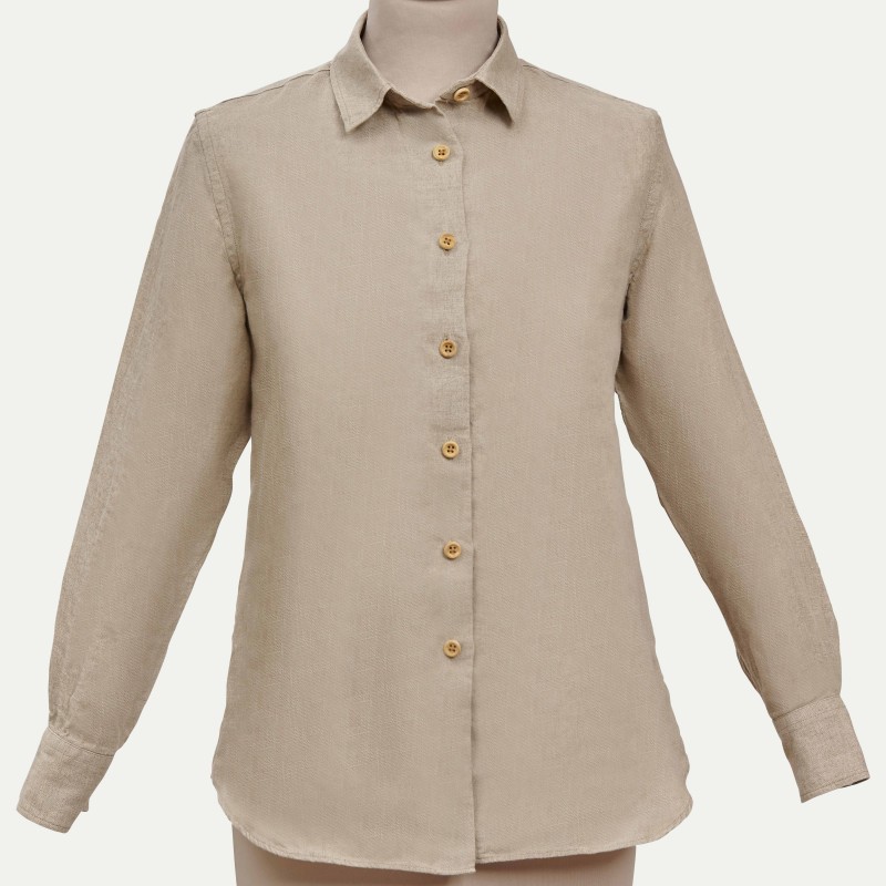 Ce chemisier droit dans son apparence mais suffisamment adapté vous procure une aisance au porter et un chic indéniable. Cerise sur le gateau, nous vous proposons cet élégant chemisier avec des boutons en buis véritable fabriqués en France.